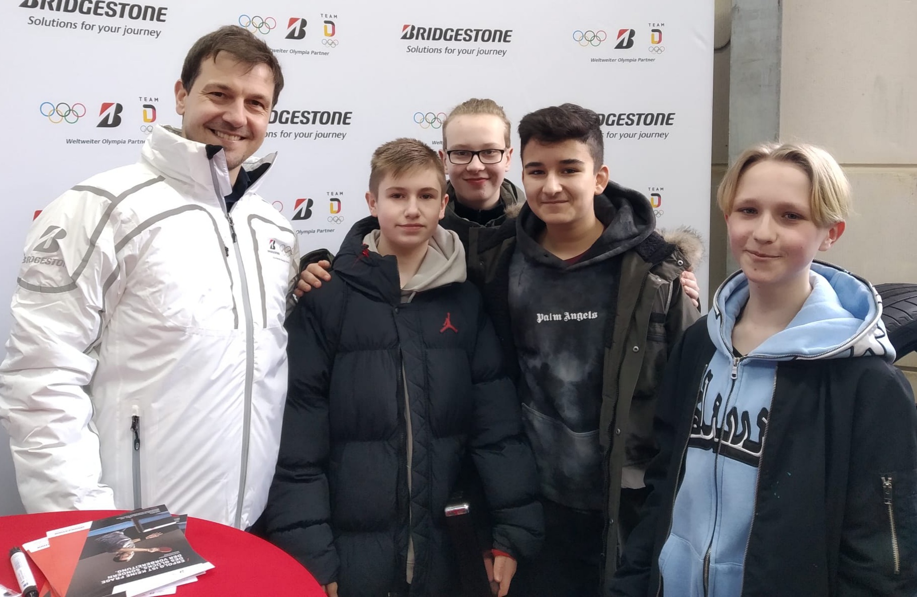 Spielfrei an diesem Samstag waren hingegen Joseph Muschler, Fabian Schönhofen, Elias Taheery und Milo Maiwald, die kurzerhand die Gelegenheit nutzten, die Bekanntschaft mit TT-Idol Timo Boll (links im Bild) zu machen. Der war anlässlich eines Auftritts als Pate der Aktion "Vereinsträume" der Herner Firma Reifen Stiebling in Herne zu Gast und stellte sich sichtlich gut gelaunt mit unseren Jungs für ein Foto zur Verfügung: